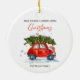 Feiern Sie die Saison mit diesem nostalgischen Weihnachtsschmuck mit einem kleinen roten Auto mit einem Weihnachtsbaum auf dem Dach und der festlichen Nachricht "Haben Sie sich ein frohes kleines Weihnachtsfest." Fügen Sie Ihren Namen oder Familiennamen für einen Sake hinzu, der Ihrem Urlaubsdekor Jahr für Jahr Vintagen Charme verleiht.
