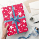 Weihnachten Rote Vorlage White Stars Rustikale Nostalgische Klassik Elegant Glossy Wrapping Paper.