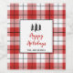 Die rustikalen, rustikalen Weine der Karierten Muster der Flanell- und Schwarzmaler Flanellweine laden zum Verweilen ein. Freuen Sie sich auf einen Flair für Ihren Urlaub oder Ihre Feiertagsgeschenke. Hier können Sie schwarze Bäume mit rotem Text "Happy Holidays" auf rotem, schwarzem und weißem Gingham-Hintergrund sehen. Schwarze Typografie mit "The Andersons" veränderbar, um Ihren Namen.