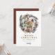 Diese Weihnachtskarte bietet rustikale Aquarellkiefern mit bunten bordeauxfarbenen Blumen und einen lustigen runden Foto-Platz im Kranz. Editieren Sie einfach alle Texte, um Ihren Bedürfnissen gerecht zu werden. Diese Urlaubskarte ist perfekt für die Weihnachtsfamilie.