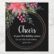 Dieses Weihnachtsweinlabel besticht durch einen Weihnachtsbaumkranz mit üppigen Filialen, rustikal rosa Blume und strahlend wilden Beeren, einen goldenen Kranz auf schwarzem Hintergrund mit handgeschriebenem Text Cheers. Ein sinnliches, stimmungsvolles und helles Geschenk für Wintertage.