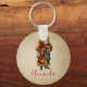 Ein Schlüsselanhänger mit einem Vintagen Weihnachtsmann aus der Alten Welt. Klassische alte Welt santa, mit seinem berühmten roten Mantel und einer Tasche voller Spielzeuge. Dieser altmodische Weihnachtsmann ist schlank und hält einen Gehstock, um durch das Land zu reisen und allen Mädchen und Jungen Spielzeuge zu schenken. Alter Pergamentstil.