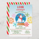 Dieses moderne Design eignet sich perfekt für eine Winter-, Weihnachts- oder Dezember-Geburtstagsfeier. Sie können aus vier verschiedenen Weihnachtsliebevollen auswählen: Santa Claus, Rudolph, der Snowman oder der Polar Bär, und eine Schneeglobe mit dem gleichen Snowman-Design im Inneren. Der Snowman windet sich in einem Globus mit einer Winterlandschaft mit einem Zuckerrohr. Er trägt ein Santa Claus-ähnliches Outfit! Das ist ein klassisches und evokatives Winter- und Weihnachtsobjekt. Farbenfrohe Schneeflocken sind in der Luft. Es sieht festlich aus! Die Rückseite dieser Einladung hat Streifen in grün, weiß und rot. Der Text auf dieser Geburtstagsfeiereinladung ist leicht zu personalisieren mit Ihren Details. Dies ist nur ein Beispiel: Der Name des Kindes verwendet einen schneesicheren Schriftart, aber man kann sich einen anderen aussuchen, wenn man möchte, oder eine andere Farbe.