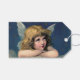 Einfach zu personalisieren Weihnachtsgeschenktafeln, um eine individuelle Nachricht zu erstellen. Vintage Abbildung Viktorianisches Weihnachtsbild mit einem wunderschönen Engel, der auf einer Wolke im Himmel ruht. Blauer Himmel mit goldenen Sternen umgeben sie.