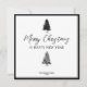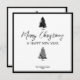 Ein einfaches Weihnachtskonzept mit Schwarz-Weiß-Design, das rustikale Kiefernbäume mit moderner Typografie zeigt. Eine perfekte Weihnachtskarte, um Ihre Familie und Freunde individuell zu gestalten und zu versenden.