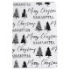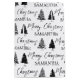 Ein einfaches Weihnachtskonzept mit Schwarz-Weiß-Design, das rustikale Kiefernbäume mit moderner Typografie zeigt. Ein perfektes Weihnachts-Design, um Ihre Familie und Ihre Freunde individuell zu gestalten.