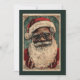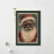Dieses Bild ist eine Weihnachtskarte des Jahrgangs mit einem lächelnden schwarzen Weihnachtsmann mit Brille. Die Karte zeigt den Weihnachtsmann mit einem roten Mantel und Hut. Die Farben im Bild sind in erster Linie rot, blau grün mit Akzenten dunkelbraun. Das Gesamtmotiv des Bildes ist festlich und traditionell und zeigt die ikonische Figur des Weihnachtsmannes während der Ferienzeit. Eine Weihnachtskarte eines Weihnachtsmannes, eine Weihnachtskarte eines Weihnachtsmannes, eine Weihnachtskarte eines Weihnachtsmannes. Weihnachten, Santa Claus, schwarzer Santa Claus, afrikanischer Santa, rot, grün, heilig & feu, grün, Vintag santa, Vintage väterliche Weihnachten,
