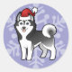 Weihnachten Siberischer Husky / Alaskan Malamute Runder Aufkleber