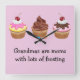 Ein niedliches Trio aus Kuchen, zwei davon haben Zuckerguss, Sahne und eine Kirsche oben. Der mittelgroße Kuchen ist mit Schokoladenkuchen bedeckt und hat Geleebohnen, die unter ihm verstreut sind. Der Text liest Grandmas sind Mütter mit viel Zuckerguss. Sie können es mit Ihrem eigenen Text personalisieren, oder wenn Sie Nana, Gigi oder anderes Wort für Oma benutzen. Sie können auch den Farbhintergrund ändern, es ist derzeit ein helles lila. Die Kuchenkunst von Delightful-Doodles.