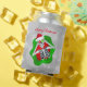 Diese Dose oder Flasche cooler hat ein lustiges Skelett mit einer roten Weihnachtsmannmütze, das rot und grün glänzende Ornamente bis zu seinen Augen in einer leuchtend roten und grünen Spritzer-Form auf einem weißen Hintergrund mit Kreisen hält. Passen Sie Ihren Text auf der Vorder- und Rückseite mit der Vorlage an.
