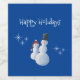Happy Holidays Weinlabel mit einem fröhlichen Snowmen-Design, gepaart mit einfachen weißen Schneeflocken. Set auf blauem Hintergrund, können Sie mit weißen Buchstaben anpassen. Ideal für Unterhaltung am Weihnachtsfest in Ihrem Party.