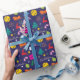 🎄 Weihnachten 🎾 Tennis marineblaue Papierrolle. Farbenfrohe Christmassy Ikonen und gelber Tennisball auf dunkelblauem Hintergrund.