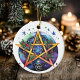 Mit diesem Weihnachten Tree Winter Solstice Holly Wicca Pentagramm Ornament-Design stärken Sie Ihren Weihnachten. Die Hintergrundfarbe dieses Ornaments lässt sich im Zazzle-Editor einfach editieren! Viel Freude und gesegnet Wintersolstice!