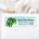 Eine niedliche Abbildung eines tropischen Palmenhains, der mit Weihnachtsschmuck geschmückt ist. Der Hintergrund ist eine Aquarellwäsche aus Wolken und Himmel. Personalisieren Sie diese Beachadressen mit Ihrem Namen und Ihrer Adresse. Palmen und Aquarellkunst von Delightful-Doodles.