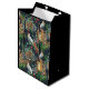 Die Weihnachtsgeschenktasche zeigt ein wunderschönes Aquarellbild mit einem Vogel, der auf einer Laterne sitzt, umgeben von Kiefern, lila und roten Beeren, Wintern-Blätter und Feriendekorationen mit einem dramatischen schwarzen Hintergrund.