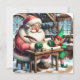 Personalisierte Weihnachtskarte mit dem Weihnachtsmann und einem bezaubernden Elf, der über die unschöne und schöne Liste in der Aquarellbilder zum Nordpol geht.