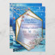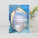 Eine blaue Winterfantasy-Schneeszene mit einem geometrischen Rahmen aus Gold