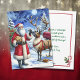 Personalisierte Weihnachtskarte mit einer Illustration der Weihnachtsfeier mit Schokoladenkeksen und einem Rentier, der am Weihnachtsabend Karotten isst.
