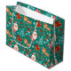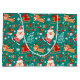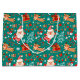 Ein festliches Weihnachtsdesign mit Weihnachtsmann, Rentieren, Bäumen und Geschenken.