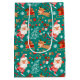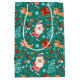 Ein festliches Weihnachtsdesign mit Weihnachtsmann, Rentieren, Bäumen und Geschenken.