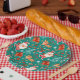 Ein festliches Weihnachtsdesign mit Weihnachtsmann, Rentieren, Bäumen und Geschenken.