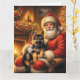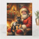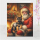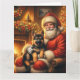 Eine bezaubernde Weihnachtsszene mit dem Weihnachtsmann und einem deutschen Schäferhund, der vor einem Weihnachtsbaum sitzt, an einem warmen, gemütlichen Feuer. Es enthält eine originelle alberne Weihnachtsbotschaft, die Hundefreunde sicher sind, Liebe zu haben.