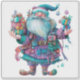 Ein fröhlicher Weihnachtsmann, der in lebhaften violetten Tönen geschmückt ist, hält farbenfrohe Geschenke in beiden Händen und strahlt den Feiertagsjubeln aus.