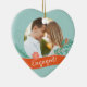 Dieses moderne und festliche Ornament ist ideal, um das Paar zu feiern, das gerade verlobt got hat. Es enthält einen Blumenbanner mit dem Wort "Verlobt". Ein Foto des glücklichen Ehepaares vervollständigt dieses farbenfrohe Design.