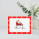 Auf dieser Postkarte befindet sich ein Foto des Weihnachtsmannes in seinem Schlitten beim Wellen. Die Worte "Danke!" sind in einem Skript-Schriftart geschrieben. Die Grenze ist ein festliches Rot. Das ist der perfekte Weg, um Ihre Weihnachten dank Ihrer Familie und Freunden zu senden.
