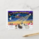 Die Sonne geht auf und enthüllt drei weise Männer, eine Weihnachtstaube und vier französische Bulldogs. Die Worte sagen Weltfrieden. Eine wunderbare Weihnachtsbotschaft, die auch Ihren Hund in die Feier der Saison einbezieht.