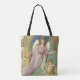 Schöne Tote-Taschen im Überdruck! Erhältlich in zwei Stilen und zwei Größen! Vintage Abbildung religiöses Viktorianisches Weihnachtsbild mit einem musikalischen Engel mit Flügeln schwimmen und halten ein musikalisches Horn. Eine Engelkirsche schwimmt neben ihr mit einer Cornucopia (ein Klassiker, ein Symbol für Überfluss und Ernährung), wobei sich Goldmünzen ausbreiten. Goldene Glocken klingeln mit Musik.