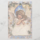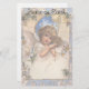 Vintage Abbildung religiöses Viktorianisches Era Weihnachtsbild mit einem schönen Engel. Der Engelkirsch ist umgeben von Efeu, Blume, Sternen und Glocken.