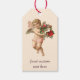 Einfach zu personalisieren Weihnachtsgeschenktafeln, um eine individuelle Nachricht zu erstellen. Vintage Darstellung des Weihnachtsbildes mit einem Kirsch mit Flügeln, die einen Blumenkranz aus Heiligen, Beeren und anderen roten Blume halten. Ein antiker Viktorianischer die, um die Feiertage in dieser Saison zu unterstützen.