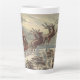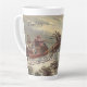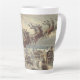 Leicht zu anpassen latte Tasse, fügen Sie einfach Ihren Namen! Vintage Abbildung Viktorianisch Frohe Weihnachtsgestaltung mit dem Weihnachtsmann in seinem Schlitten mit seinen Rentieren, die an Heiligabend Spielzeug liefern. Nikolaus fliegt durch den Himmel über eine Stadt mit Häusern im Licht des Mondes. Von Thomas Nast.