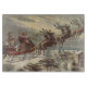 Vintage Abbildung Viktorianisch Frohe Weihnachtsgestaltung mit dem Weihnachtsmann in seinem Schlitten mit seinen Rentieren, die an Heiligabend Spielzeug liefern. Nikolaus fliegt durch den Himmel über eine Stadt mit Häusern im Licht des Mondes. Von Thomas Nast.