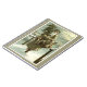 Vintage Illustration Weihnachtsfeierdesign mit einem Viktorianischen Weihnachtsmann, der durch den Schnee verlassend Fußspuren geht. Er trägt einen Weihnachtsbaum und einen Körbchen Spielzeug auf einem bewölkten Abend, wobei der Mond durch die Wolken strahlt. Ursprünglich eine skandinavische Postkarte mit dem Text: Gott Jul oder Frohe Weihnachten.