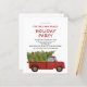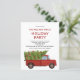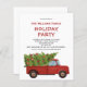 Mit dieser niedlichen Vintagen Einladung für rote LKW bereiten Sie sich auf das Weihnachtsfest-Party vor. Einfach den Text ändern. Trendy Aquarellwagen und Baum. Das Blatt Papier ist dünner als Kartenpapier.