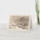 Ein Vintager Sepia-Druck, der aus dem 19. Jahrhundert stammt. Ein Dorfnacht und ein ländlicher Abend, in dem der Weihnachtsmann und die Geschenke, die er mitbringt, auf einem Schlitten getragen werden, der von 4 Rentieren gezogen wird. Der Schlitten nähert sich den Toren und führt durch einen Garten mit 2 großen Bäumen zur Veranda eines großen Hauses. Ein großer Vollmond tief am Horizont erhellt die Landschaft mit einem kleinen Dörfchen im Hintergrund. Einfache Anpassung