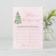 Das Pink Bows Weihnachtsbaum What's In The Diaper Bag Baby Shower Game ist eine charmante und festliche Aktivität für Ihre Feier zum Thema Urlaub! Dieses Spiel mit einem hübschen Design mit rosa Bögen, Weihnachtsbäumen und einem schneebedeckten rosa Hintergrund lädt die Gäste dazu ein, das in einer Windeltasche verborgene Baby-Wesentliche zu erraten. Ideal für die Winterdusche eines kleinen Mädchens, bringt Lachen, Spannung und saisonalen Beifall und schafft unvergessliche Momente für alle Gäste. 🎀 🎄 ✨