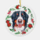 Dekorieren Sie Ihren Baum oder geben Sie ein besonderes Geschenk in dieser Weihnachtszeit mit diesem Berner Hund Weihnachtsschmuck. Ein Aquarellhund mitten in einem Weihnachtskranz. Personalisieren Sie den Rücken mit Ihrer Nachricht.