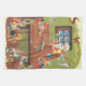 Vintage Illustration Frohe Weihnachtsfeiergestaltung mit einem fröhlichen Weihnachtsmann und seinen Elfen viel beschäftigte Gebäude Spielzeuge in Santa's Werkstatt am Nordpol an Heiligabend. Jeder Elf hat ein Lieblingsspielzeug. Das Bild stammt aus einem antiken Adventskalender. Grüße und glückliche Ferien der Saison!