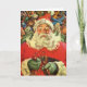Einfach Weihnachtskarte anpassen, einfach Ihre persönliche Nachricht hinzufügen! Vintage Illustration Frohe Weihnachtsbilder mit einem fröhlichen Weihnachtsmann, der seinen Schlitten mit einem Sack voller Spiele, Spielsachen und Puppen fliegt. Sie können den langen weißen Bart des Weihnachtsmanns im Wind wehen sehen!