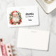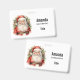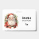 Namensschild mit einem niedlichen Vintagen Stil Aquarellbild. Der Weihnachtsmann in seinem roten Anzug mit fröhlichen Wangen und einem lächelnden Gesicht. Umgeben von Kiefern und Heiligen.