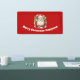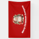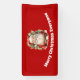 Weihnachtsbanner mit einem niedlichen Vintagen Aquarellbild. Der Weihnachtsmann in seinem roten Anzug mit fröhlichen Wangen und einem lächelnden Gesicht. Umgeben von Kiefern und Heiligen.