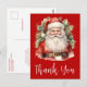 Vielen Dank Postcard mit einem niedlichen Vintagen Aquarellbild. Der Weihnachtsmann in seinem roten Anzug mit fröhlichen Wangen und einem lächelnden Gesicht. Umgeben von Kiefern und Heiligen.