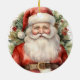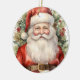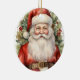 Ein Ornament mit einem niedlichen, Vintagen Aquarellbild. Der Weihnachtsmann in seinem roten Anzug mit fröhlichen Wangen und einem lächelnden Gesicht. Umgeben von Kiefern und Heiligen.