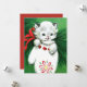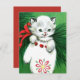 Vintage weiße Weihnachtskatze der 50er Jahre in einer Handschuhmitten. Ideal, um Ihre Vintage Retro Weihnachtskartenkollektion zu ergänzen oder für den Urlaub an Familie und Freunden auszuschicken. Dies kann auf andere Produkte übertragen werden, einschließlich gefalteter Visitenkarten.