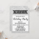 Feiern Sie die Urlaubssaison mit dieser festlichen Weihnachts-Weihnachten-Feier Einladung. Die Party-Details sind in einer skurrilen, fett schwarzen Schriftzeichen-Typografie mit einem funkelnd silbernen Glitzer Glitzern-Hintergrund geschrieben. Diese Einladung eignet sich perfekt für ein Party im Urlaub, Weihnachten und Winter!