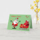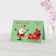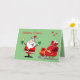 Weihnachtsfeiertag mit einem Cartoon Weihnachtsmann mit einem saisonalen Drink oder Cocktail. Er ist neben seinem Schlitten mit Spielzeug und Geschenken stehend, und Schneeflocken fallen mit einem rot-grünen Urlaubsthema über. Im Inneren ist ein saisonales Weihnachten und Neujahr Gruß. Jede Formulierung kann geändert oder gelöscht werden, oder Sie können Ihren eigenen Namen oder Familiennamen personalisieren.