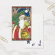 Vintage Abbildung Viktorianischer Stil Frohe Weihnachtsfeiertag Weihnachtsbild mit St. Nikolaus mit einem Weihnachtsbaum und Streicheln eines Hirsches im Wald, ein Vollmond im Nachthimmel. Ein Jolly Santa trägt einen Sack voller Spielzeuge und Puppen auf seinem Rücken, der an Heiligabend fertig gestellt ist. Glückliche Feiertage und Grüße der Saison!